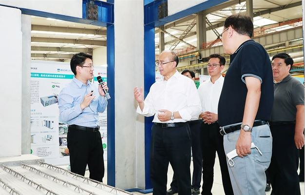 2021年6月2日上午,秦皇島市委書記朱政學(xué)一行蒞臨精工綠筑項(xiàng)目現(xiàn)場調(diào)研指導(dǎo),市委常委、常務(wù)副市長、北戴河新區(qū)黨工委書記劉亞洪,市委常委、秦皇島開發(fā)區(qū)黨工委書記劉學(xué)彬,撫寧區(qū)委書記張立紅等主要領(lǐng)導(dǎo)陪同調(diào)研,精工綠筑總經(jīng)理王曉春、總助樊春利、廠長丁奇亮