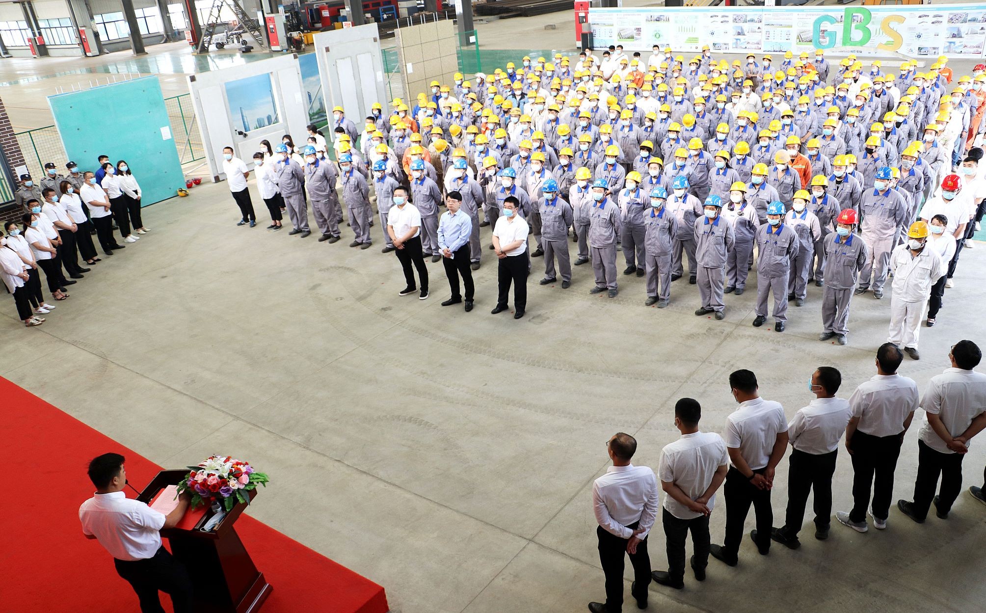 2021年8月8日上午8時,吹響沖鋒號,在精工綠筑工廠展廳隆重舉行了“大干一百天”動員誓師大會儀式,公司總經(jīng)理王曉春、副總經(jīng)理屠國平等領(lǐng)導(dǎo)及全體管理干部、生產(chǎn)全體職工350余人共同出席大會。會議現(xiàn)場氣氛莊重?zé)崃?,與會人員斗志昂揚(yáng),充分展現(xiàn)了精工人的“